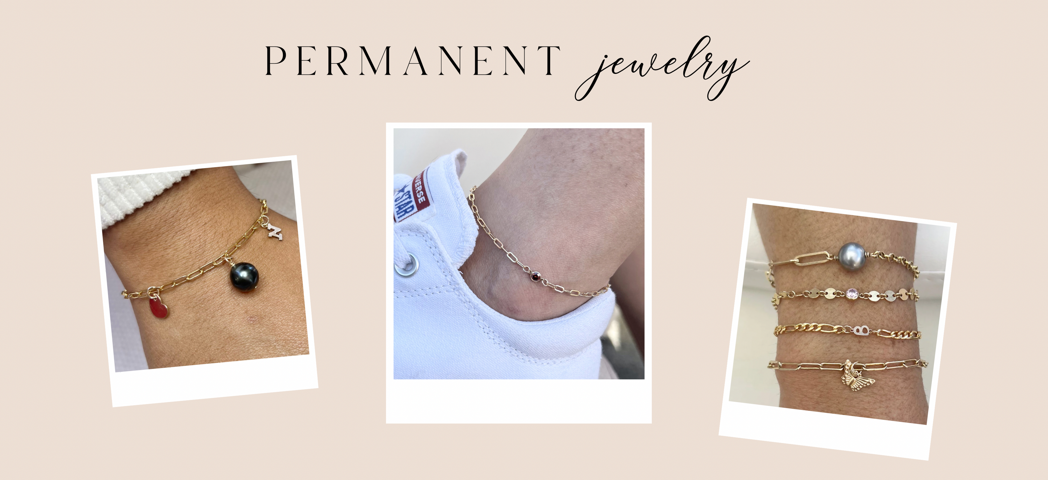Permanent jewelry is clasp-less jewelry that is designed just the way you want it. It is then custom fit just for you. We currently offer permanent bracelets, anklets, and necklaces.